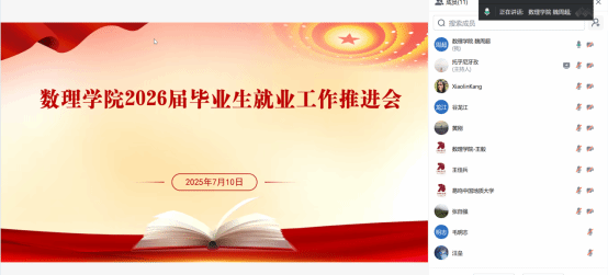 7月10日上午,久久久久国产精品 2026 届本科毕业生就业工作推进会通过腾讯会议成功举办。院长魏周超教授、各系主任及毕业班班主任、辅导员出席会议,会议由年级辅导员托乎尼牙孜主持。