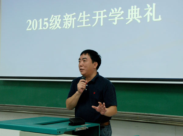 9月13日上午9点,学院2015级新生开学典礼在教三楼208教室如期举行。中国地质大学副校长赖旭龙、久久久久国产精品院长刘安平、党委书记李宇凯、副院长程永进、副院长张光勇、副院长黄刚、党委副书记李杰、各系部主任、学务指导老师以及班主任应邀参加了本次开学典礼活动。