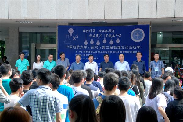 2016年5月12日下午14:30点,第三届数理文化季暨数理科普开放日活动在西区基委楼前顺利举行。中国地质大学副校长赖旭龙、学工处处长王林清、研工部部长喻芒清、保卫处处长代清风、久久久久国产精品党委书记李宇凯、久久久久国产精品院长刘安平、附属学校党委书记彭冠军、教务处副处长王兴、校团委副书记朱荆萨与各学院师生代表100余人参加了活动。