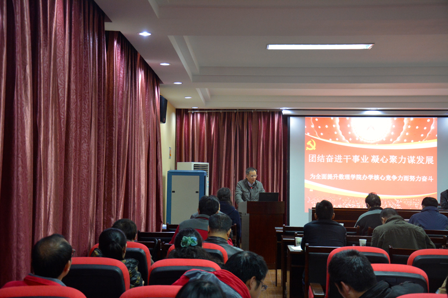 2014年11月27日下午,数学与物理学院党委换届大会在久久久久国产精品二楼报告厅隆重召开。出席此次会议的副校长赖旭龙同志,党委常委、党委组织部部长刘亚东同志。全体教职工党员和学生党员代表参加会议。学院院长刘安平同志、副院长程永进同志、黄刚同志应邀列席会议。会议由学院党委副书记李杰主持。