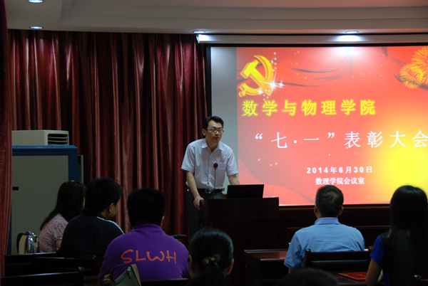 院党委副书记李杰宣读《数学与物理学院“七一”表彰决定》