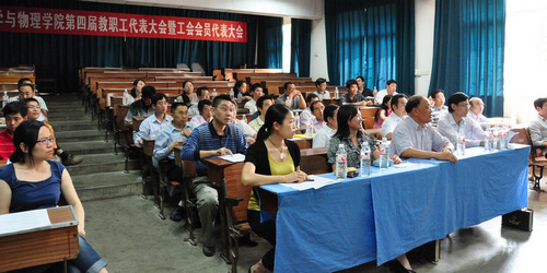 5月28日14:30,中国地质大学(武汉)数学与物理学院在基委楼101召开第四届教职工代表大会第一次会议暨工会会员代表大会第一次会议。校党委副书记丁振国、校工会常务副主席高芸应邀出席,我院各三级单位代表47人参加会议。大会由副院长彭放同志主持。