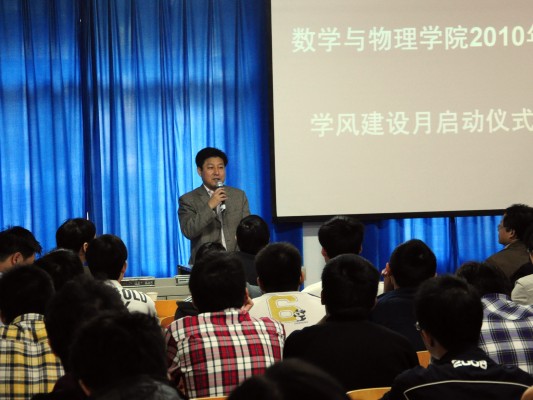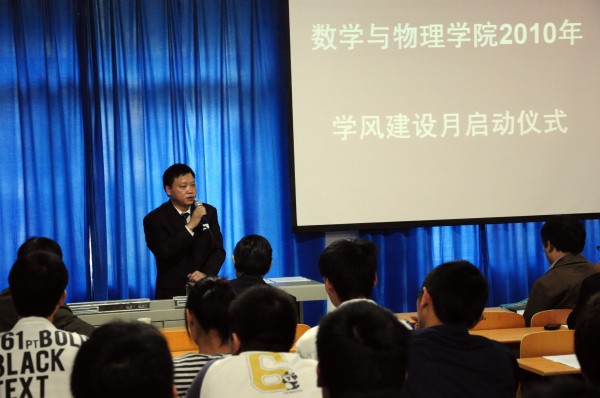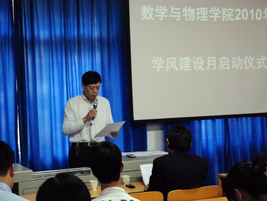 10月20日,久久久久国产精品2010年“学风建设月”启动仪式在数理楼二楼会议室成功举行。教务处杨伦处长、学工处王林清处长,教务处王兴副处长,校团委成军副书记,学院刘安平院长,彭放副院长、以及学院各教研室主任应邀出席此次活动。院党委副书记李杰主持会议。