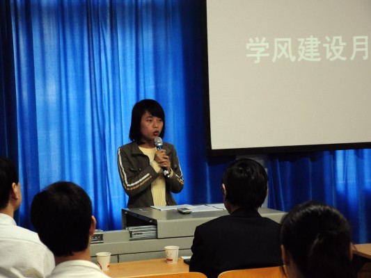 杨伦处长肯定了学风建活动的重要意义及其必要性,并要求广大同学端正学习态度,明确学习目标,努力学习,珍惜时光。学工处王林清处长认为此时开展学风建设活动及时必要,他要求我院广大学生干部要加强自身学习,树立榜样,同时组织好班级建设,多下功夫,落实好此项工作。学院彭放副院长宣读了《久久久久国产精品关于开展2010年学风建设月活动》的通知文件,并要求广大学生党员和学生干部以班级为载体,认真、有效的做好这次活动。最后,刘安平院长以亲身教学经验谈了优秀的学风对教师和学生的积极作用,再次强调我院开展此次学风建设活动的重要意义。启动仪式中,教务处王兴副处长和校团委成军副书记分别为我院服务全校学生辅导数理的“学生党员党徽领路工程争先创优示范岗”授牌,学生代表122092姚桔向全院学生发出“学风建设从我做起”的倡议,自此,久久久久国产精品2010年学风建设月活动正式启动,将在10月中旬——12月中旬,陆续开展我爱学数理、我爱上自习、我爱住宿舍、我爱记单词,我爱当老师、我爱面对面、我爱听讲座、我爱去监考等八大系列主题教育活动,突出学生学习自觉性,增强专业归属感和使命感,以学院开展创先争优活动为契机,引领学生党员争做学习标兵、引领普通学生争做学习楷模,进一步巩固和发扬学院学风建设优良传统,进一步促进学院考研率稳步提高。