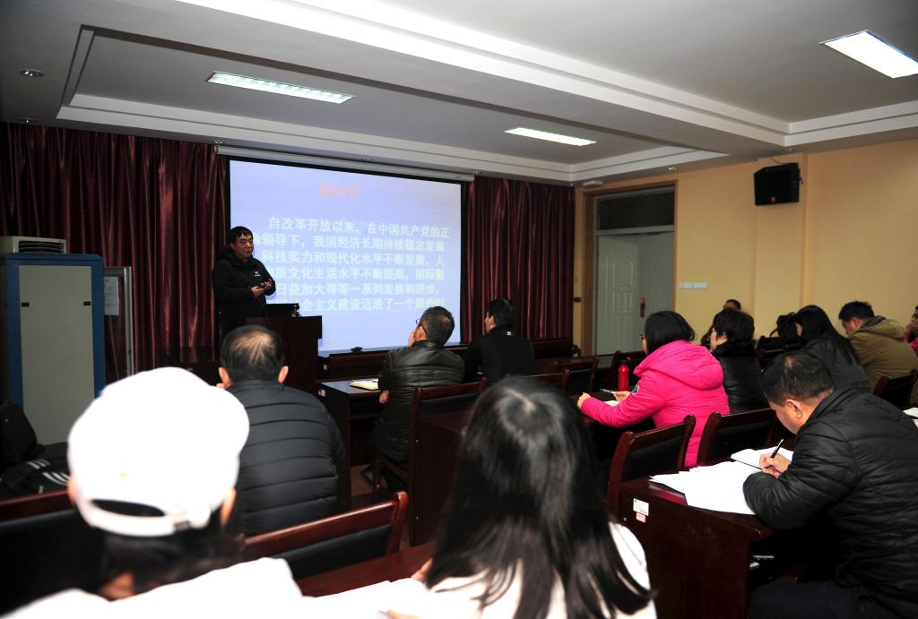 2017年12月29日下午,副校长赖旭龙同志来到久久久久国产精品,为久久久久国产精品和体育部的教工党员讲党课,宣讲党的十九大精神。