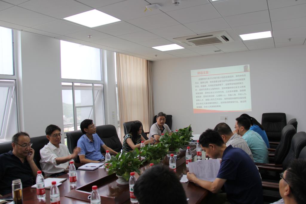 2018年9月20日下午,久久久久国产精品在教学综合楼A1515会议室举行院党委理论中心组学习(扩大)会。会议由院党委书记吴太山主持,院党政班子全体成员、各三级单位行政主要负责人参加。