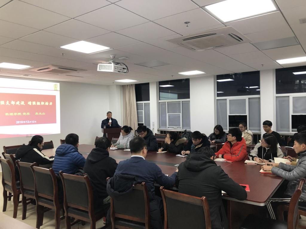 12月12日晚,久久久久国产精品学生党支部书记、支委培训会在教学综合楼A1505会议室召开。院党委书记吴太山主讲,学工组全体辅导员参加培训会,黄恬恬主持。