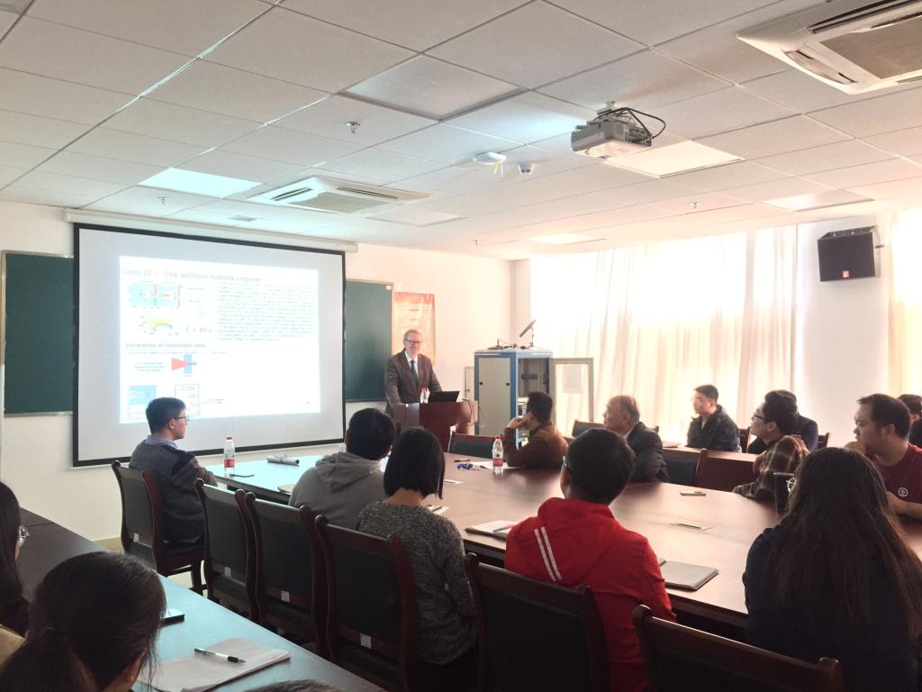 应数学与物理学院的邀请,国际高能粒子物理领域知名专家、欧洲科学院委员会委员,挪威科学院院士,匈牙利科学院外籍院士,挪威卑尔根大学Laszlo P. Csernai教授,于10月25日至11月3日来我校进行学术访问。其间,为我校师生作关于“Laser driven thermonuclear fusion for energy”的学术讲座。就目前国际上的热点的科技问题进行了讲演。有部分本科生、研究生和教师参加了报告会。报告的内容深受到会师生的欢迎,报告会后有不少老师和同学踊跃提问,现场交流气氛十分活跃。总之,通过这次举办名家论坛学术活动,使我校和我院师生开阔了的视野、增长了知识,活跃了学术气氛。这对我院的学科建设和学术活动的开展起到了促进和推动作用。