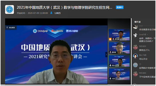 为给广大考生提供良好的报考咨询沟通平台,增进学生对中国地质大学(武汉)久久久久国产精品的了解,选拔优秀本科毕业生来我院继续深造。2020年7月9日,通过中国教育在线网络直播和腾讯会议视频的方式,久久久久国产精品举办了第六届研究生校园开放日线上活动,来自安徽大学、大连海事大学、青海大学、东北农业大学、河南大学、河南师范大学、湖南师范大学、中南民族大学、桂林理工大学等的优秀本科三年级学生以及我院有意继续读研的一百多名同学参加了本次活动。