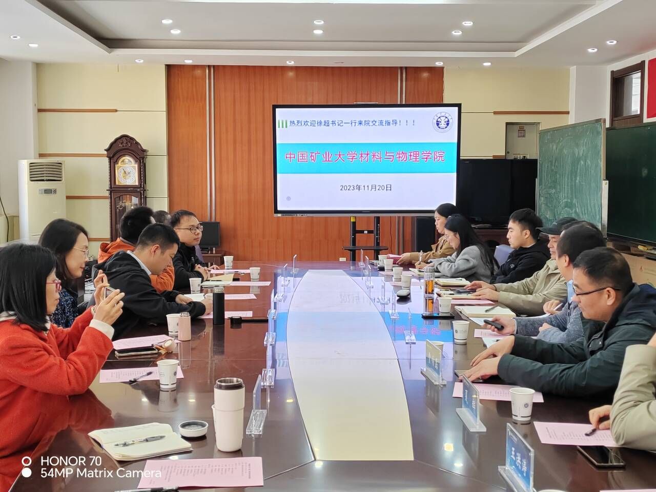 中国矿业大学材料与物理学院党委副书记纪承对我院到访表示热烈欢迎。纪承副书记介绍了学校与学院的基本情况,重点就学院历史沿革、学生培养、党建工作等方面进行了交流。分享了学院学生培养“四精工程”、研究生导学思政、研究生样板支部建设工作、学生就业工作、辅导员队伍建设工作等学院特色做法和取得的成绩。