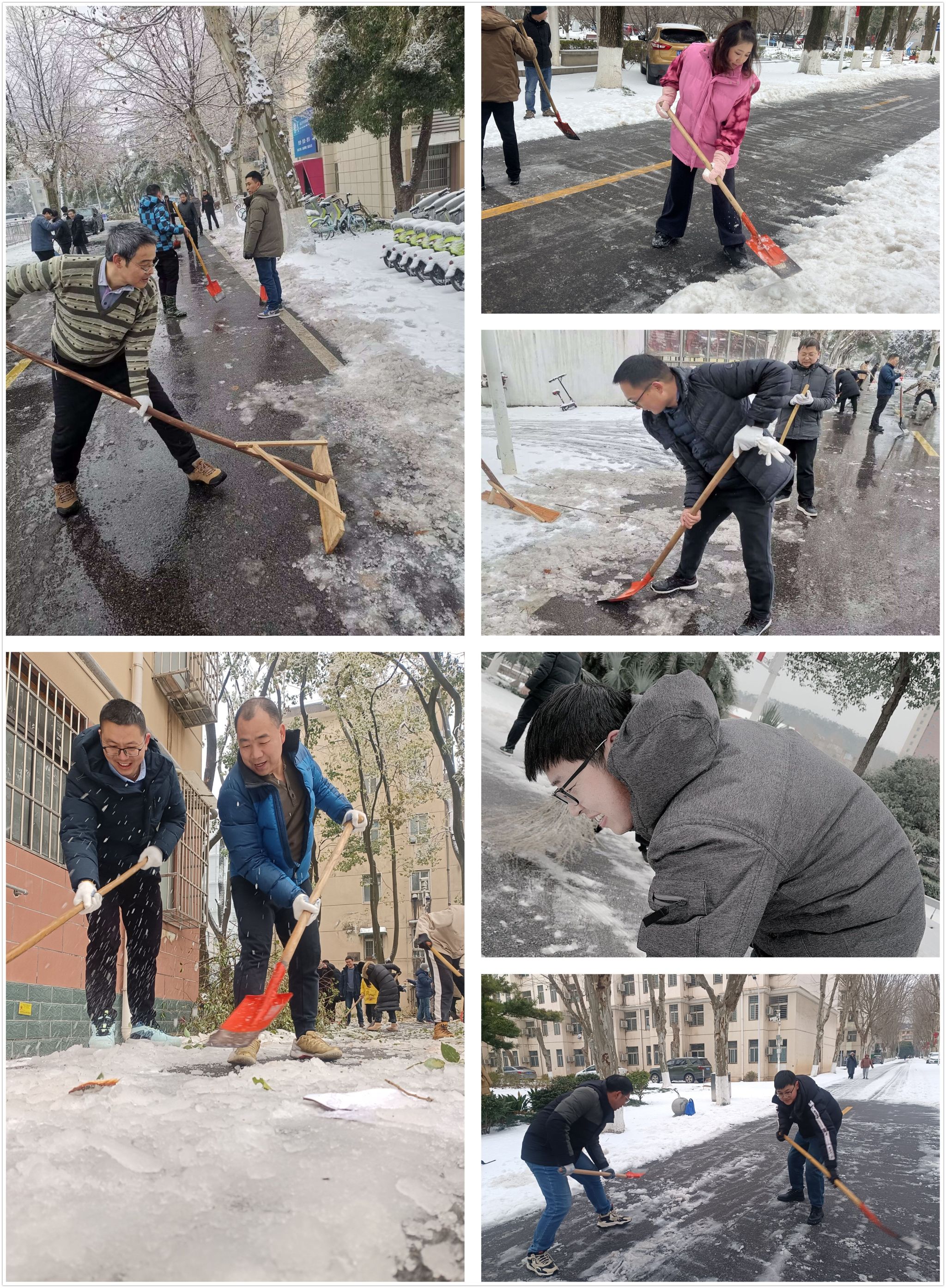 新学期开学在即,武汉再次出现极端雨雪冰冻天气。久久久久国产精品党委第一时间响应学校扫雪除冰清障志愿服务工作号召,迅速部署,广大教职员工积极踊跃报名,先后共有13人以实际行动战风雪,破寒冰,为师生安全保驾护航,生动诠释了“一个支部就是一座堡垒,一名党员就是一面旗帜”。