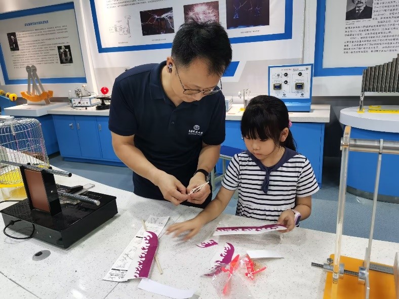 为深入贯彻落实党的二十大精神和习近平总书记关于家庭家教家风建设重要论述精神,进一步丰富我院教职工子女暑期生活,激发青少年对科学探索的兴趣,7月10日上午,由数学与物理学院工会和湖北省科普教育基地物理实验中心联合举办的“数理扬帆 科技远航”学院教职工子女暑假科普活动在西区基础楼物理演示与探索实验室成功举行,学院教职工代表及其子女30余人参加活动。