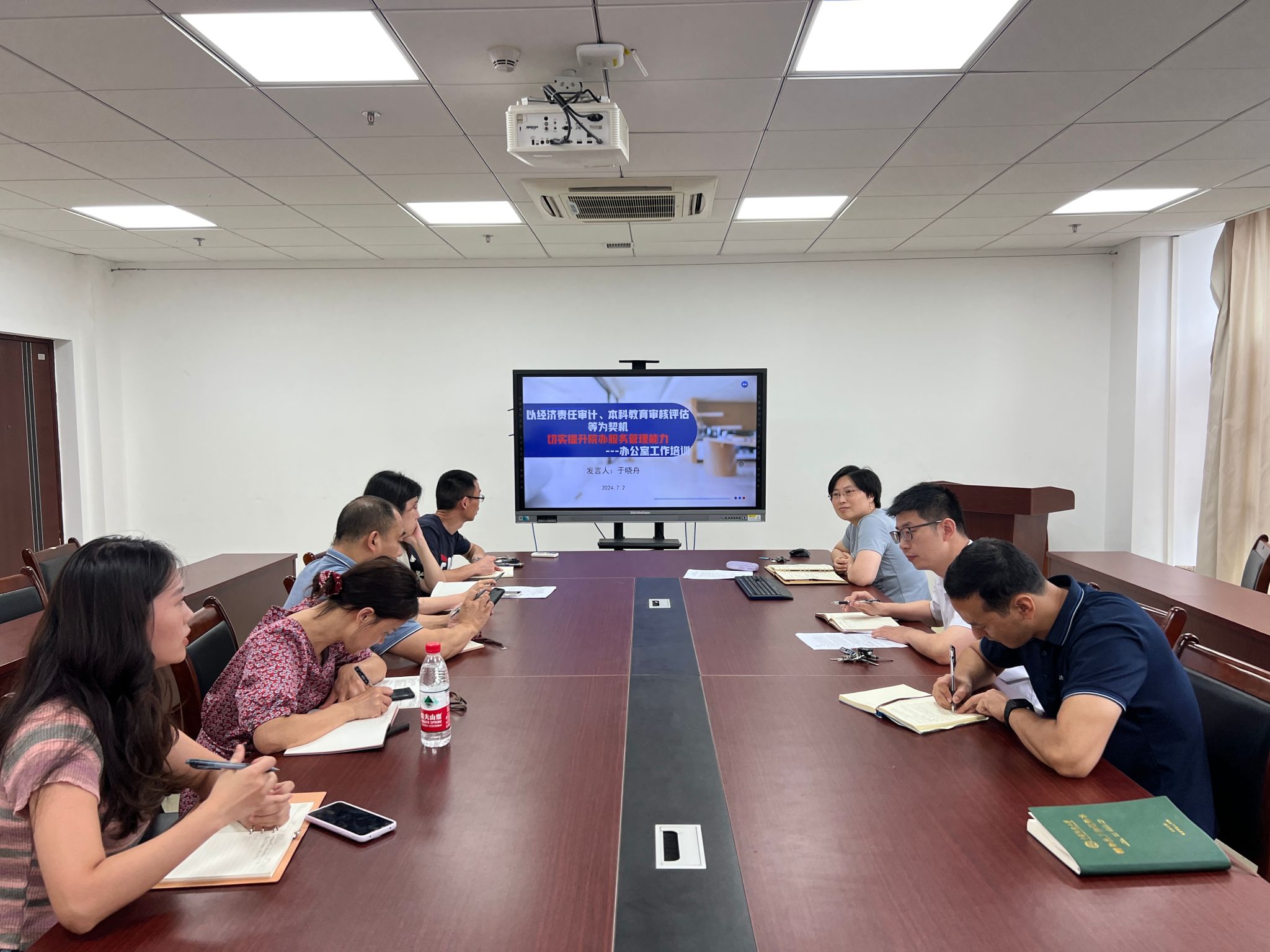 于晓舟首先向与会各位老师并通过他们向全院教职工致以节日的问候和诚挚的祝愿,并介绍了开展本次座谈会的目的。