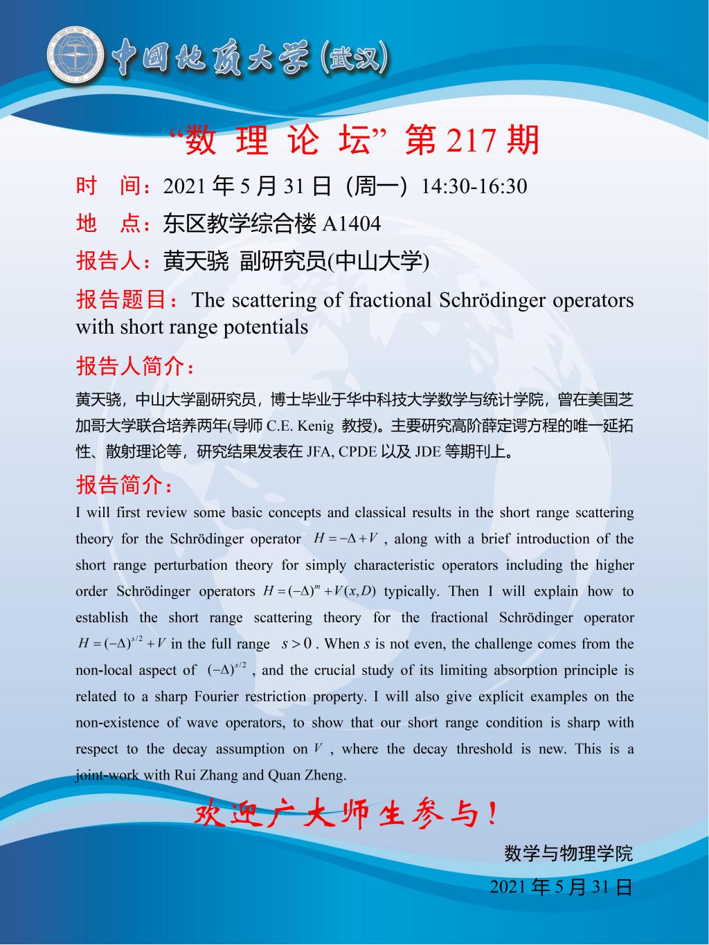 "数理论坛"第217期:The scattering of fractional Schrödinger operators with short range potentials