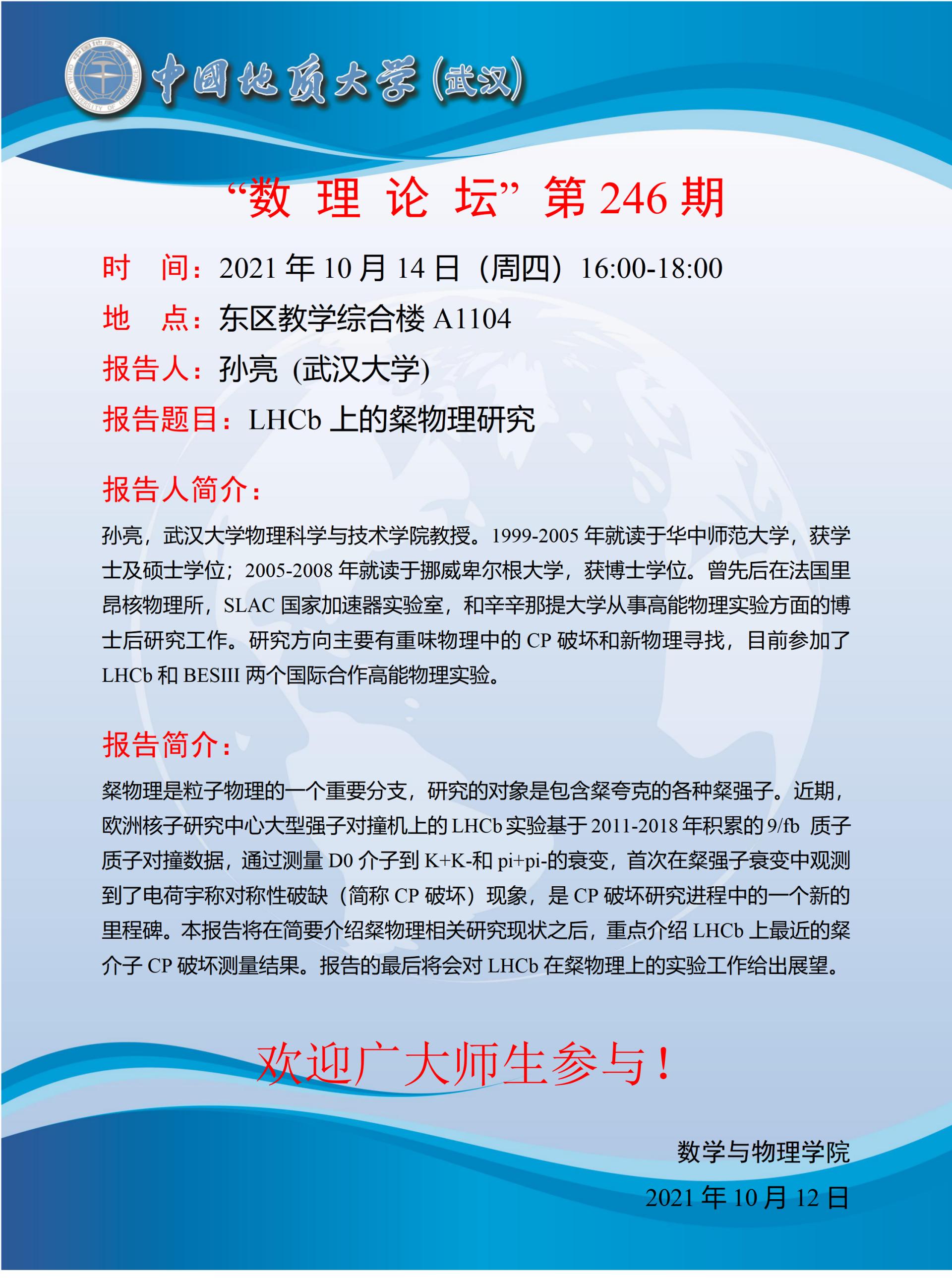 "数理论坛"第246期:LHCb上的粲物理研究
