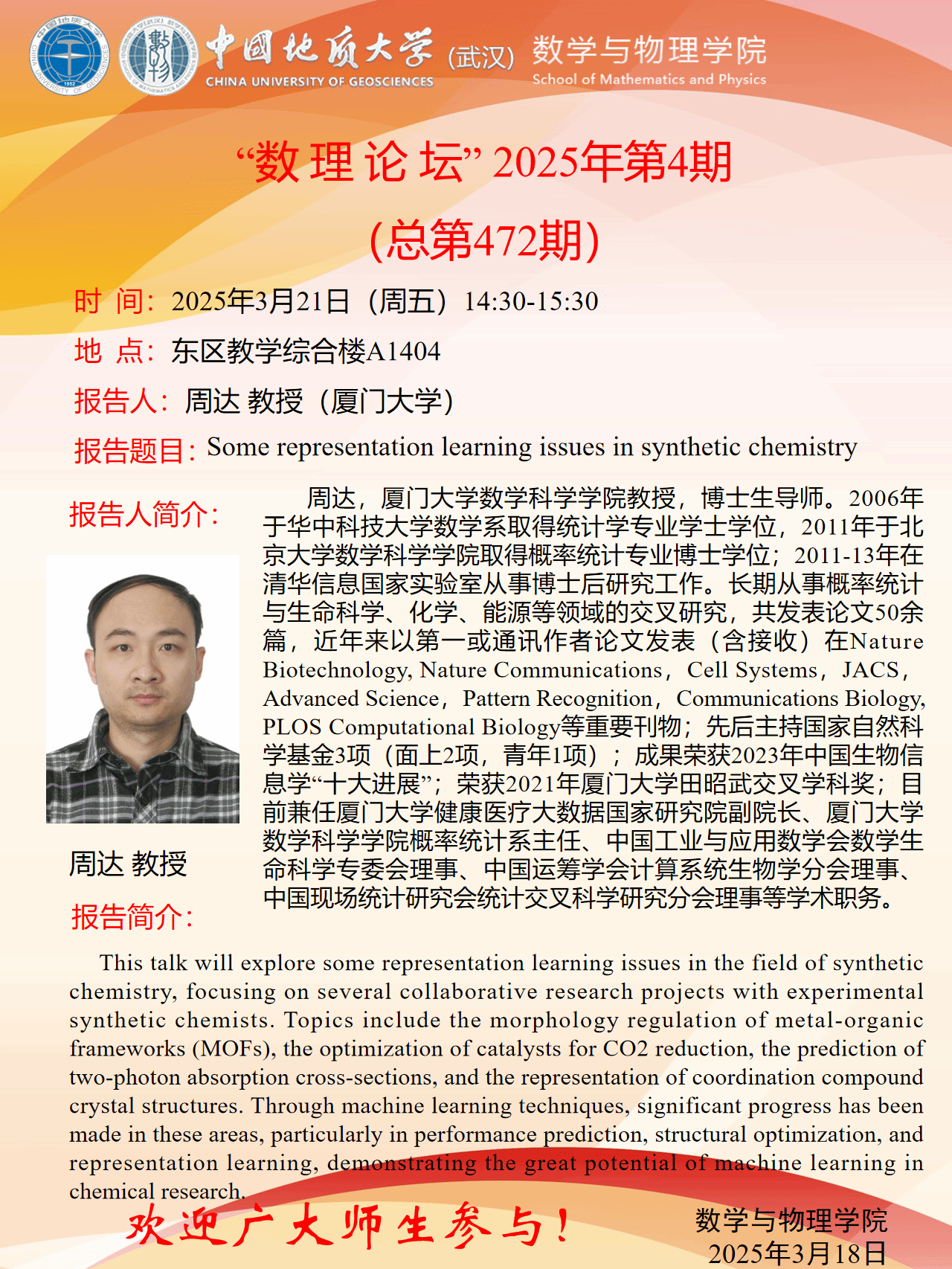 2025年3月21日周达教授学术报告:Some representation learning issues in synthetic chemistry