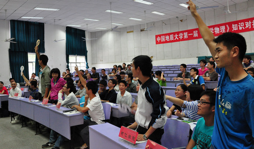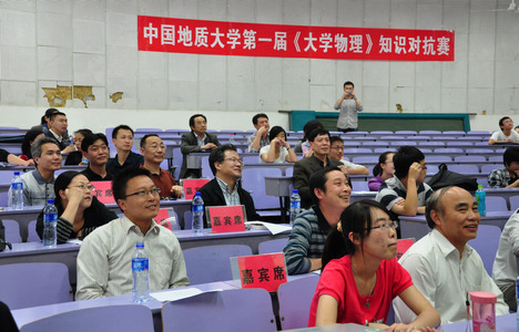 由校教务处、学工处、校团委、久久久久国产精品主办,久久久久国产精品物理系、物理实验中心和物理科技协会承办的首届“中国地质大学(武汉)《大学物理》知识对抗赛”活动,于5月26日下午在教三楼110成功举行。校教务处副处长王兴、学工处副处长张建和、校团委副书记成军应邀出席,久久久久国产精品院领导、各系所教师与会指导。