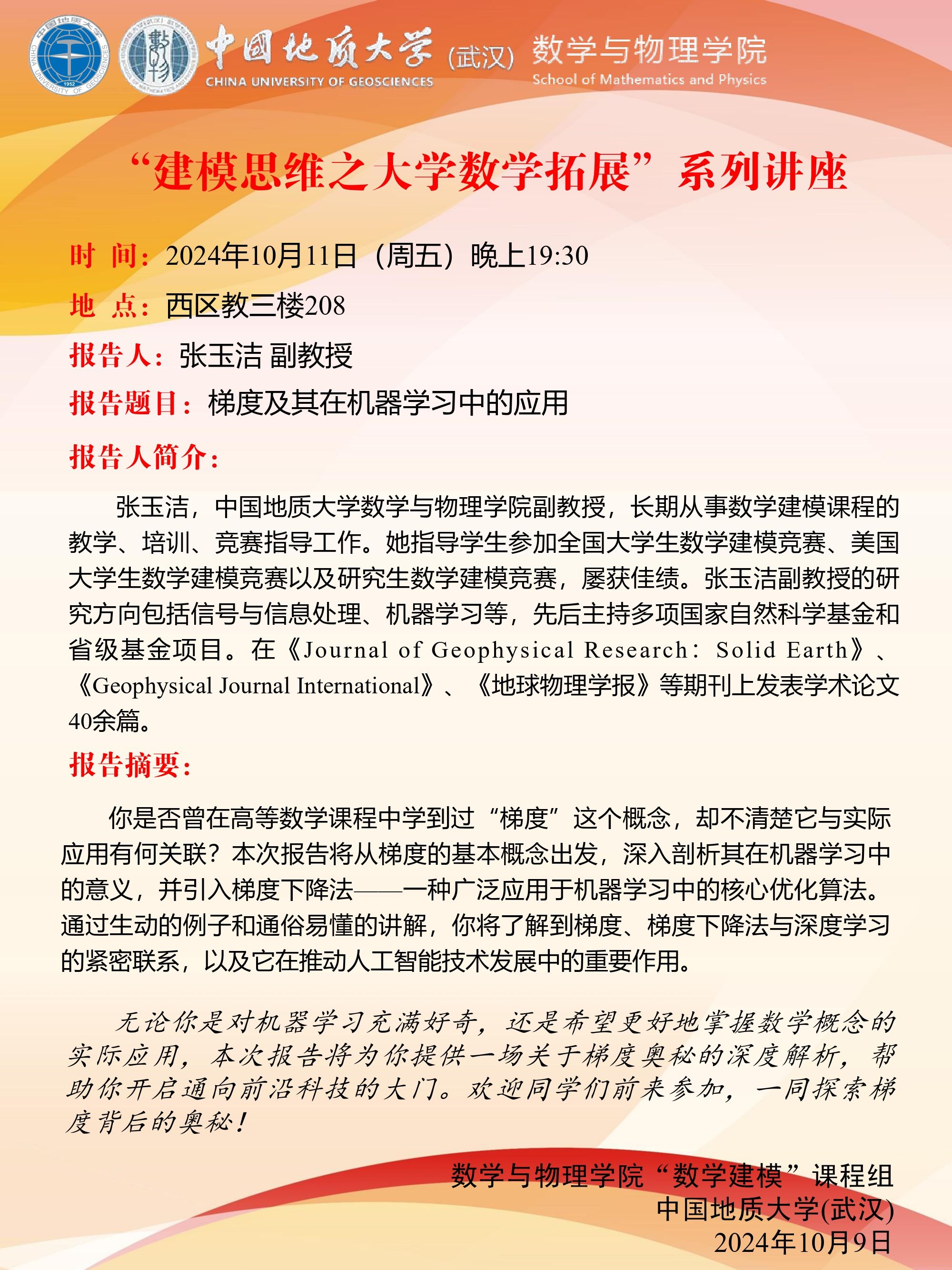 “建模思维之大学数学拓展”系列讲座:梯度及其在机器学习中的应用