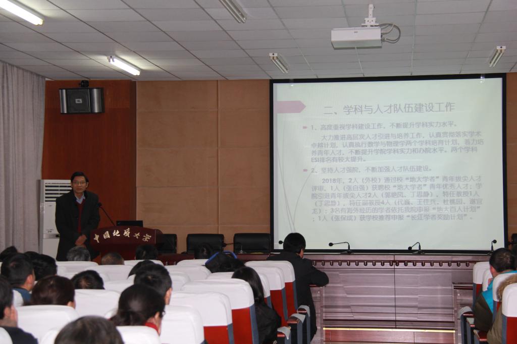 院长刘安平代表学院领导班子作了2018年工作报告。他在报告中全面总结了学院一年来的各项工作,重点介绍了在党建与思想政治工作、学科及人才队伍建设工作、本科教学工作、科研工作与国际交流、研究生工作、实践教学与安全保卫工作和学生工作等方面取得的突出成绩,并就2018年学院的财务使用与管理情况进行了报告和说明。
