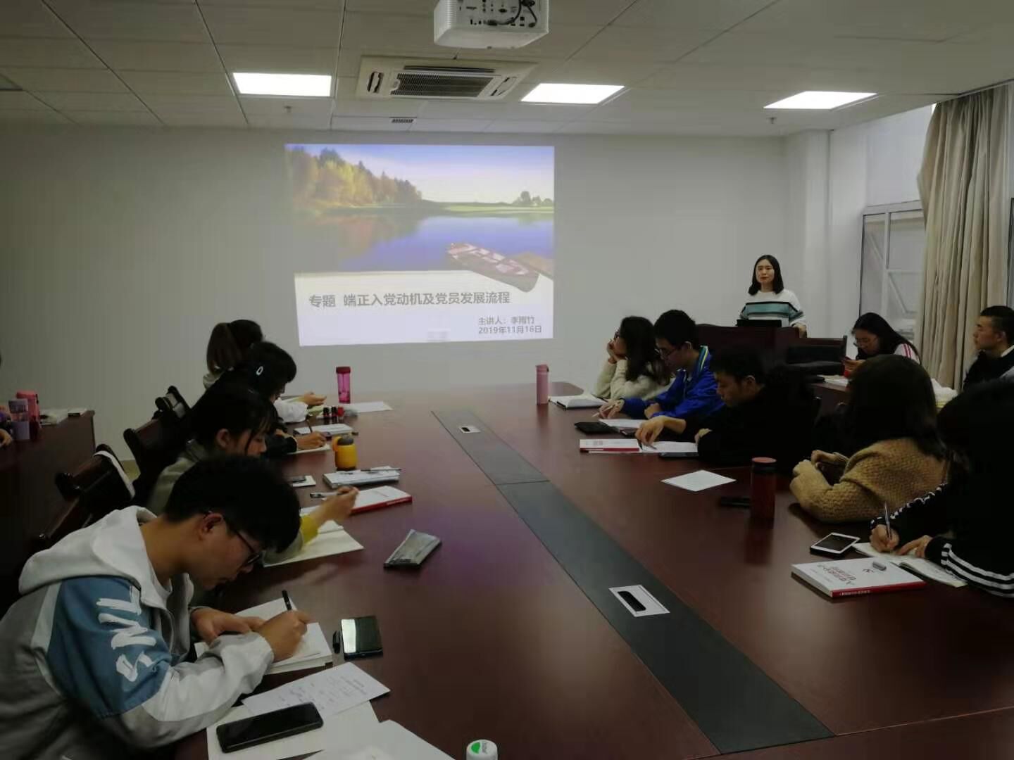 11月16日下午,数学与物理学院第66期入党积极分子培训班第三讲在东区教学综合楼A1505会议室举行。党委组织部李雨竹老师主讲,主题为端正入党动机及党员发展流程。孙宇涛老师主持。