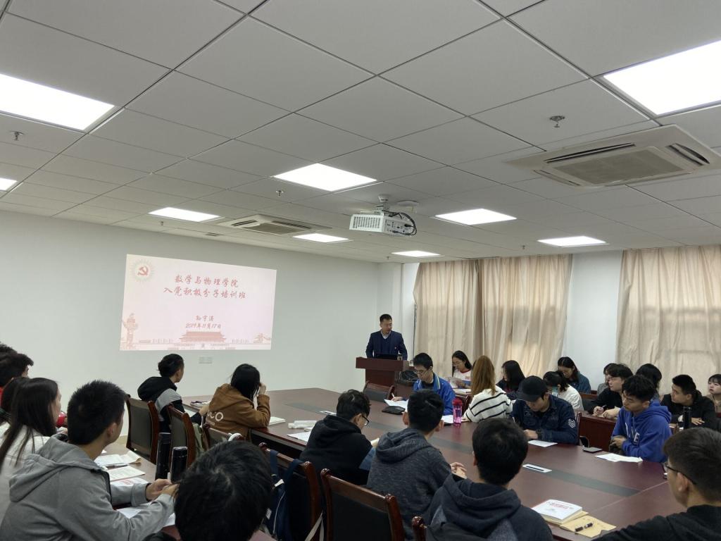 11月17日上午,数学与物理学院第66期入党积极分子培训班第四讲在东区教学综合楼A1505会议室举行。本次党课由孙宇涛老师主讲,主题为党的十九大报告解读及张富清同志先进事迹教育。